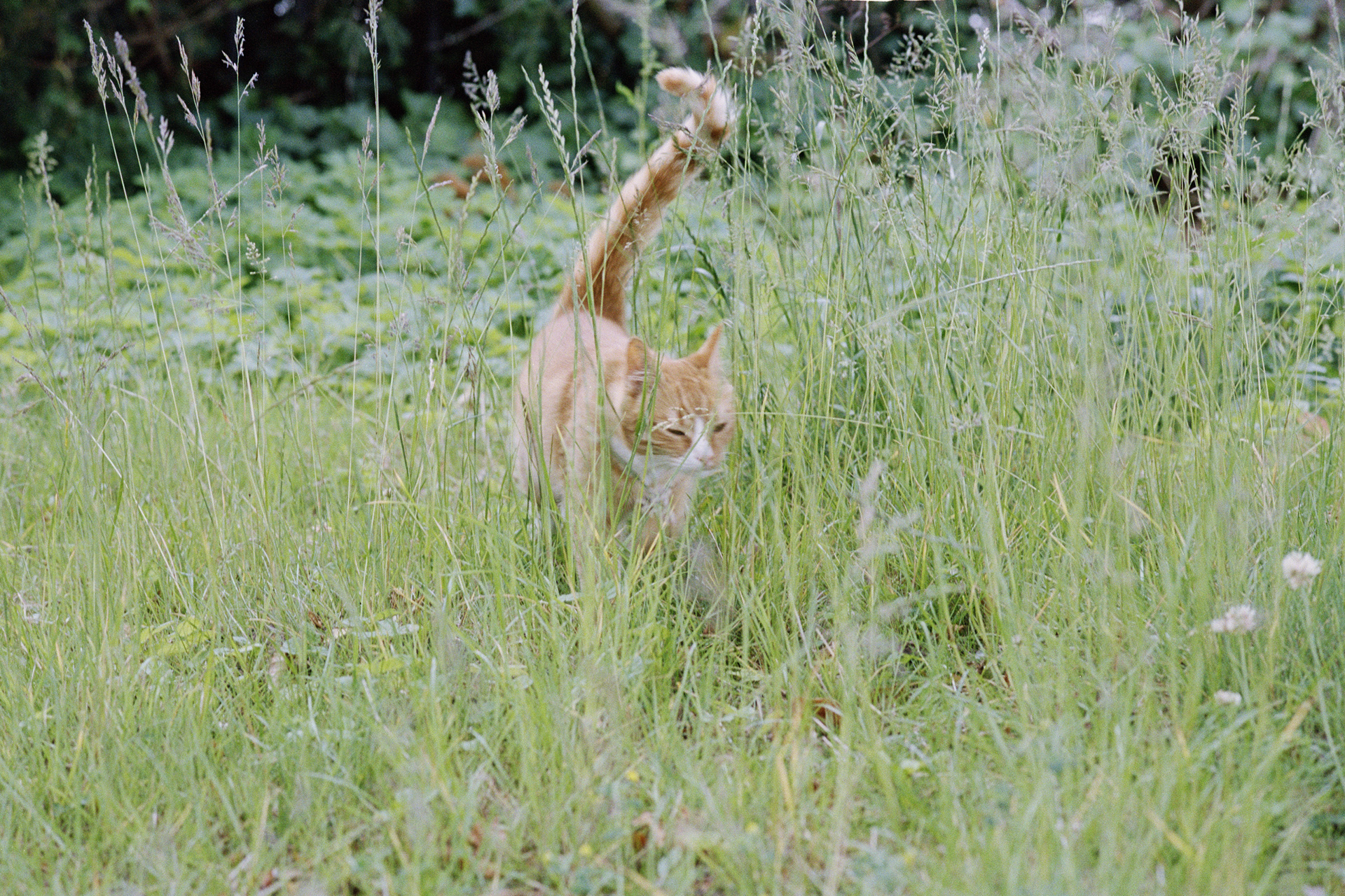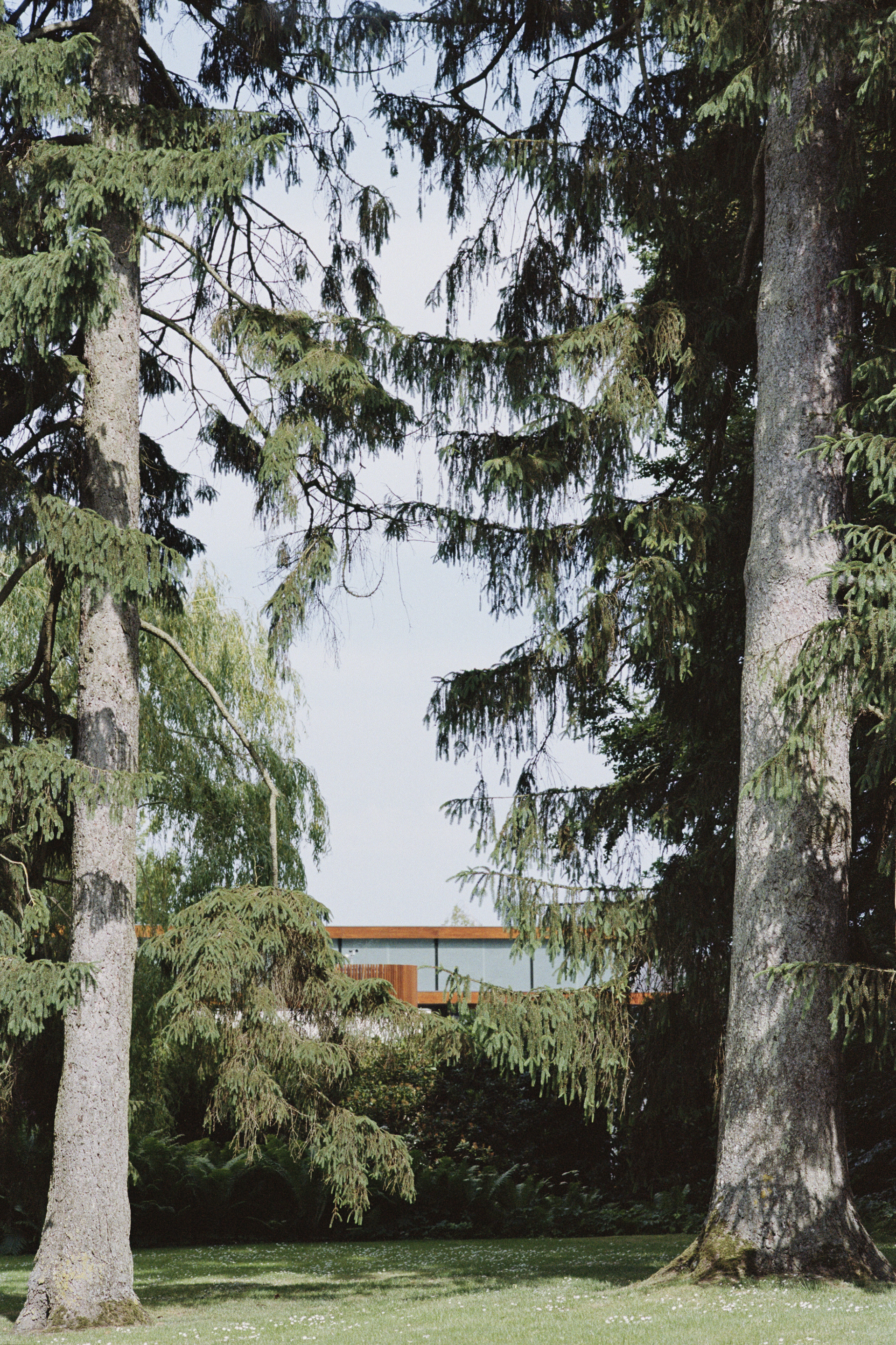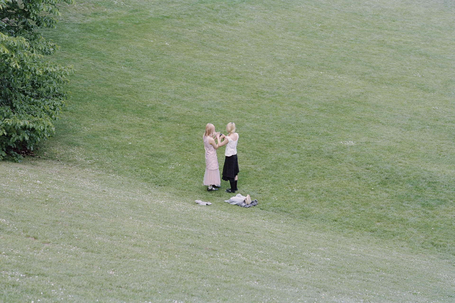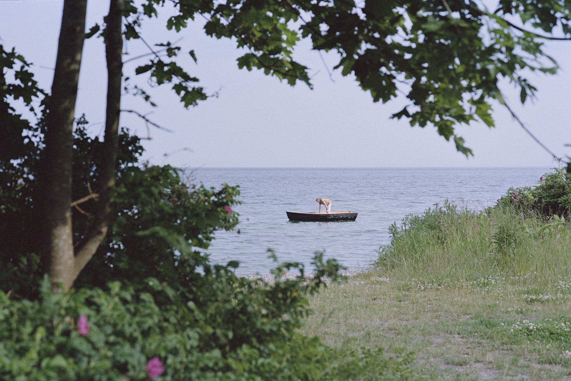 HUSH HUSH was photographed in Humlebæk, Denmark, during the long light of a Northern European summer. The series observes quiet fragments of an ordinary afternoon — wild flowers in a field, reflections in open windows, a distant boat, a house half-hidden by trees.